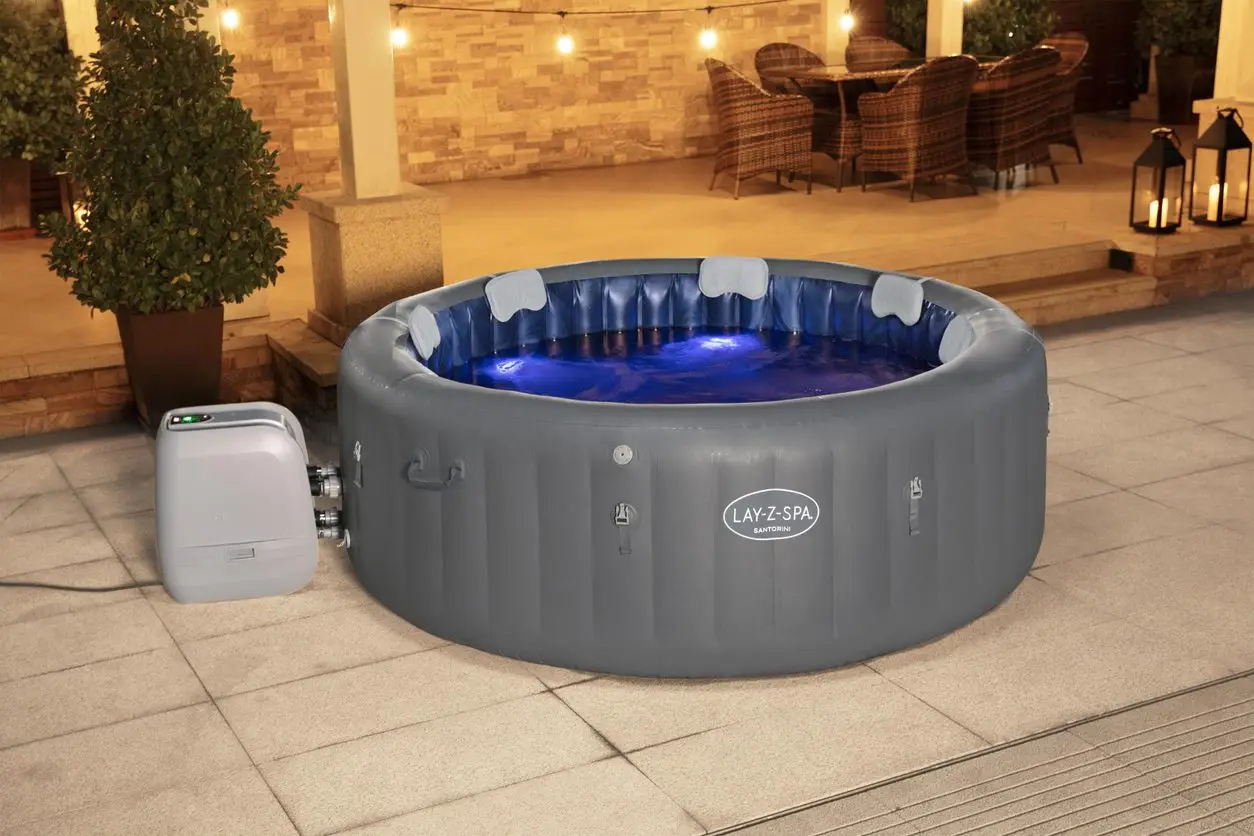 סנטוריני -מערכת הספא החדשנית והמובילה מבית LAY-Z-SPA המגיעה לטמפרטורה של עד 40 מעלות. המערכת משלבת לוח בקרה דיגיטלי נוח לתפעול, מערכת בועות וסילון משופרת ומשודרגת, תאורת לד חמימה, ספסל ישיבה, עיסוי פנימי + עמדת מסאג׳ מיוחדת לרגליים. מערכת עיסוי 10 סילוני מים HYDROJET ו 180 סילוני אוויר.